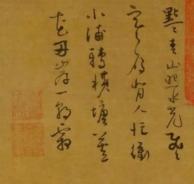 本幅自题:“点点青山照水光,飞飞寒雁背人忙。冲小浦,转横塘,芦花两岸一朝霜。”