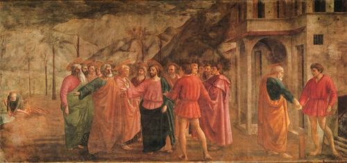因此马萨乔创作的《纳税银》,巧妙地与历史事件相对应。