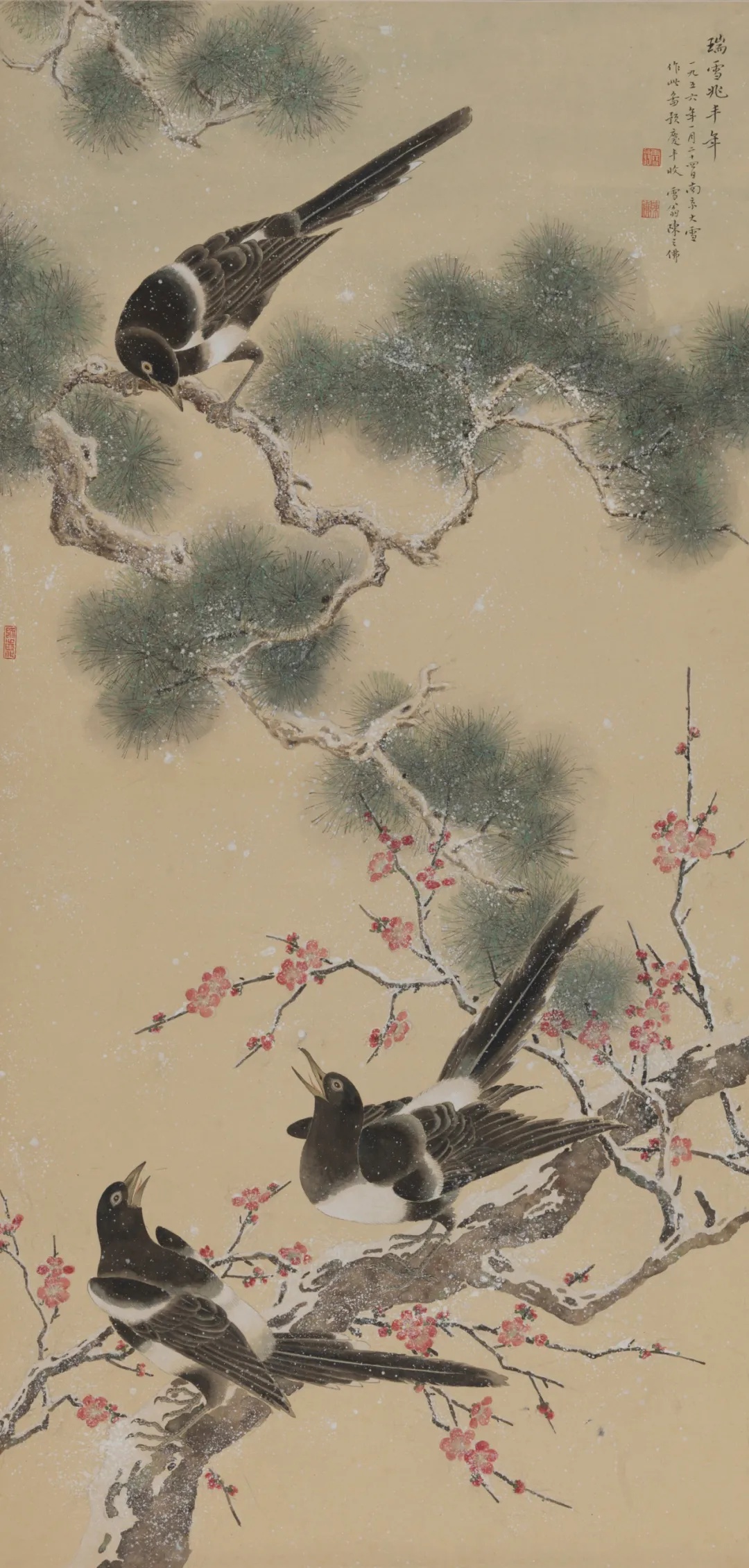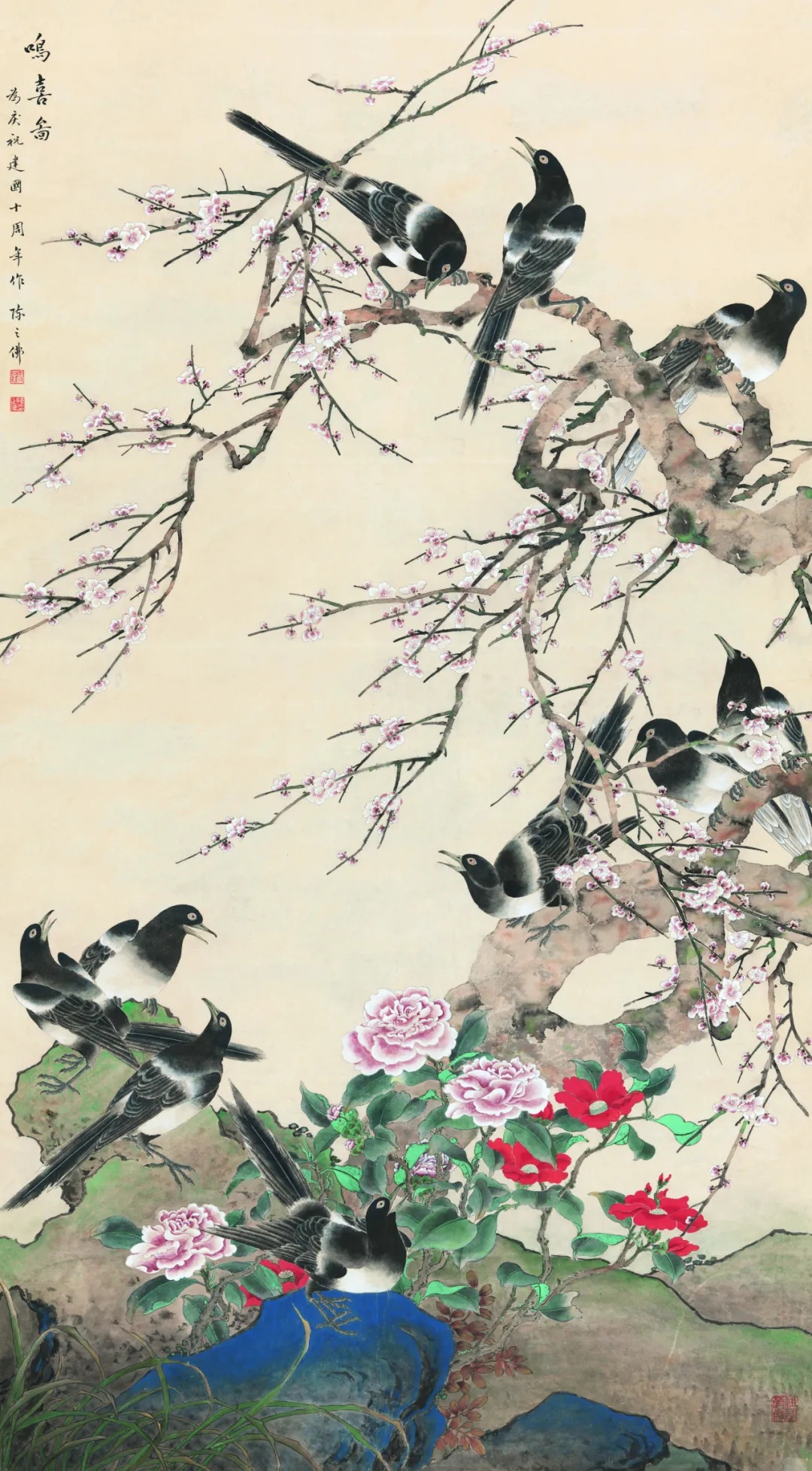 鸣喜图 中国画 167×93.6cm 1959年 中国美术馆藏
