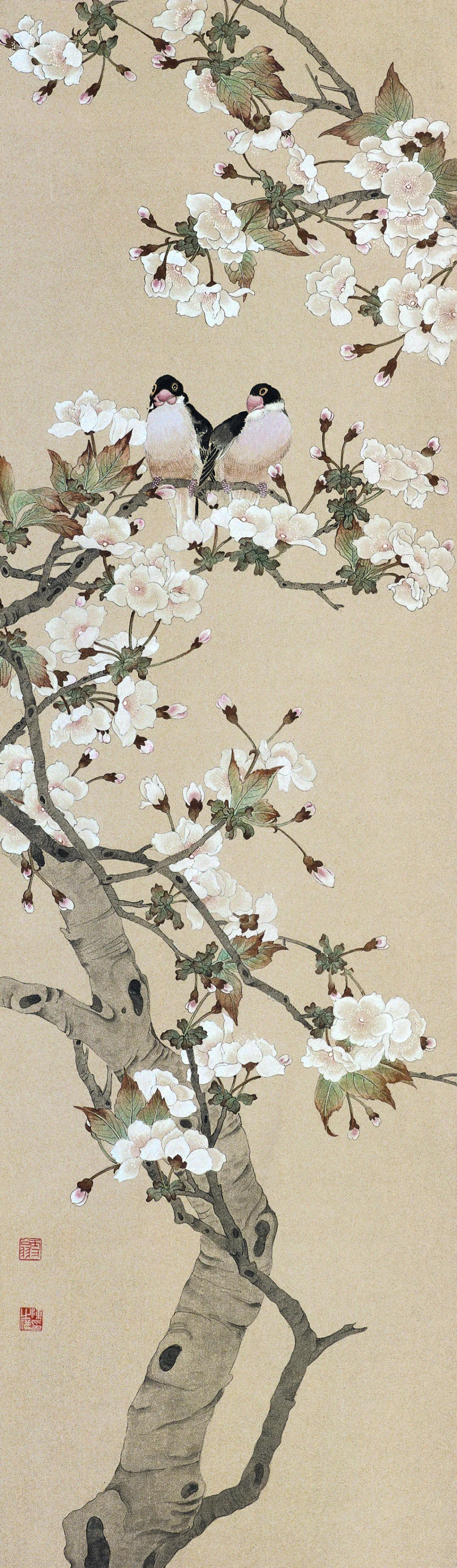 樱花小鸟 中国画 110.8×32.3cm 1959年 中国美术馆藏