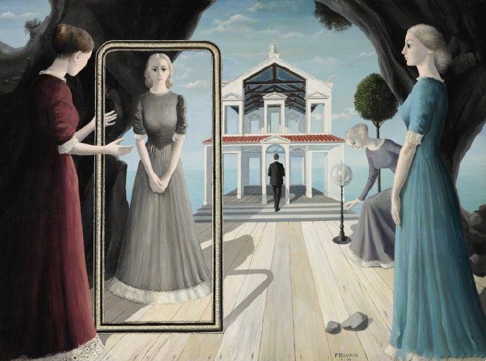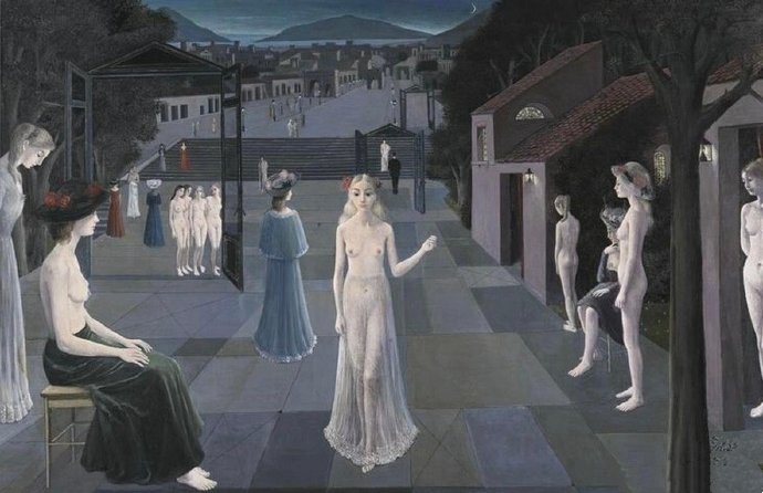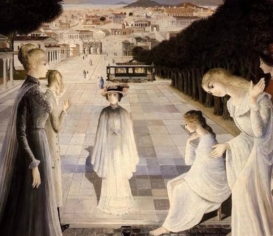 比利时艺术家保罗. 德尔沃是著名的超现实主义画家,其作品多以裸女为主。常描绘身材修长、眼神呆滞迷茫、皮肤白皙宛如蜡像的裸女们,出现在空旷建筑内的场景。