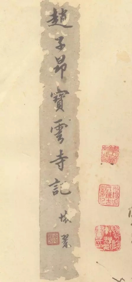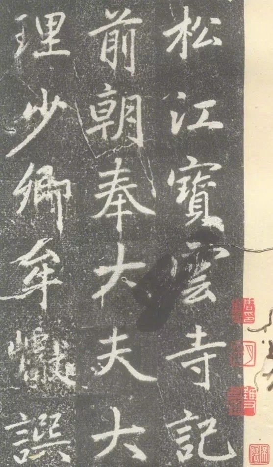 【赵孟頫《松江宝云寺记》】松江宝云寺建成于唐大中十三年(859年),位于今上海市金山区亭林镇。相传“宝云寺”曾有1048间,梵宇轩昂,绵延数华里,号称“江南名刹之五,华亭之最”。由于饱经自然灾害及战火沧桑,“宝云寺”屡修屡毁。元代重修时住持净月立碑,牟巘撰文,廉密知儿海牙(汉名廉恂)篆额“重修宝云寺记”,碑文《松江宝云寺记》由赵孟頫书,当地人均将此碑称“子昂碑”。光绪版《重修华亭县志》载“咸丰十一年毁于兵”,仅存山门及“子昂碑”。1966年,山门及“子昂碑”均被人为毁坏。碑额及不足原碑十分之一的残碑(共70余字)现存于亭林镇政府内。