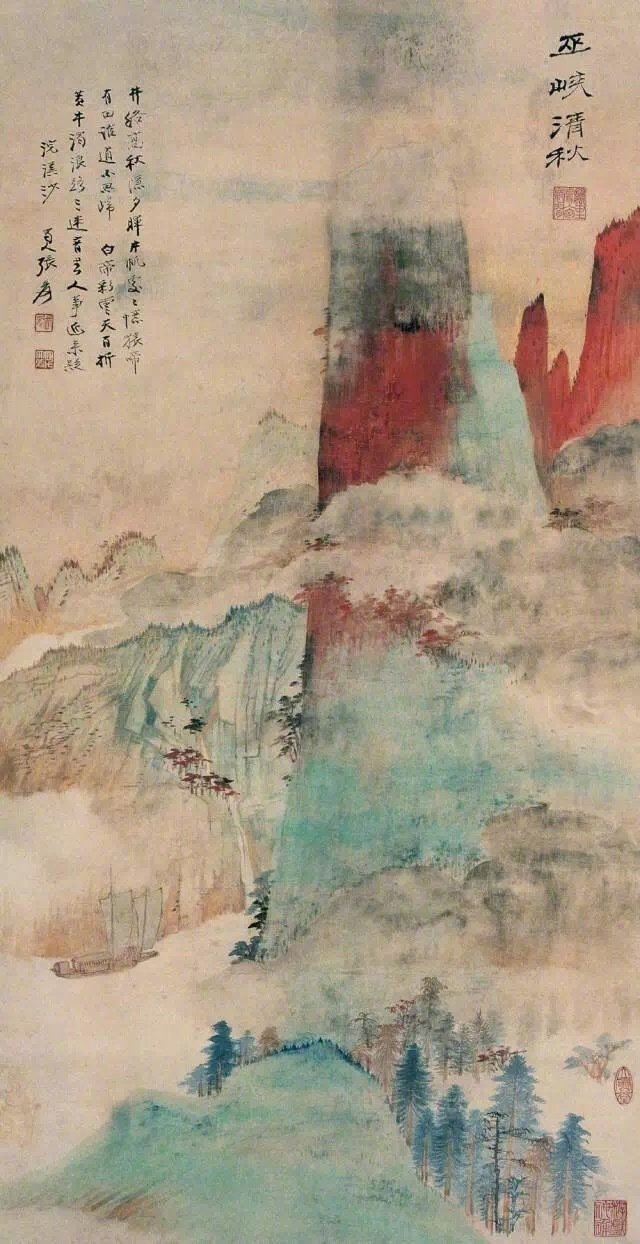 张大千是全能型画家,其创作达“包众体之长,兼南北二宗之富丽”,集文人画、作家画、宫廷画和民间艺术为一体。于中国画人物、山水、花鸟、鱼虫、走兽,工笔、无所不能,无一不精。诗文真率豪放,书法劲拔飘逸、外柔内刚、独具风采。