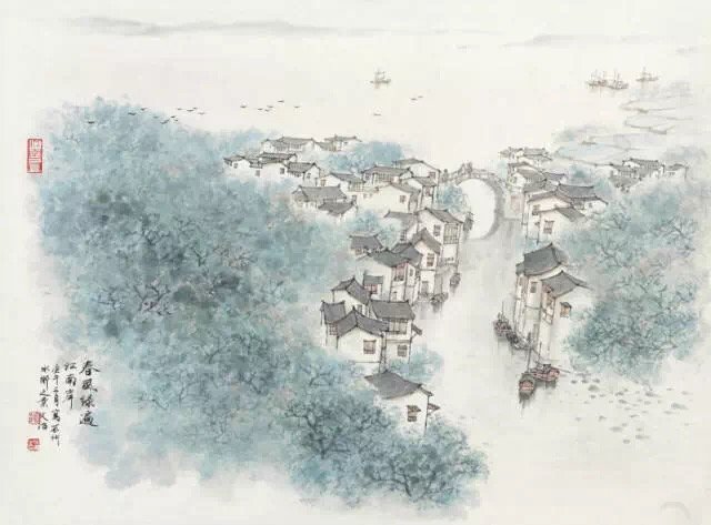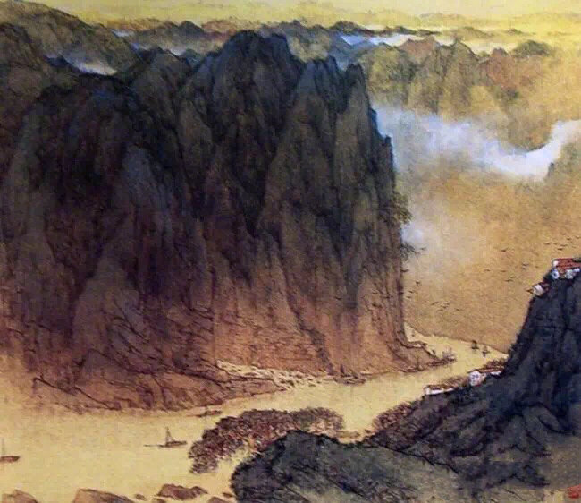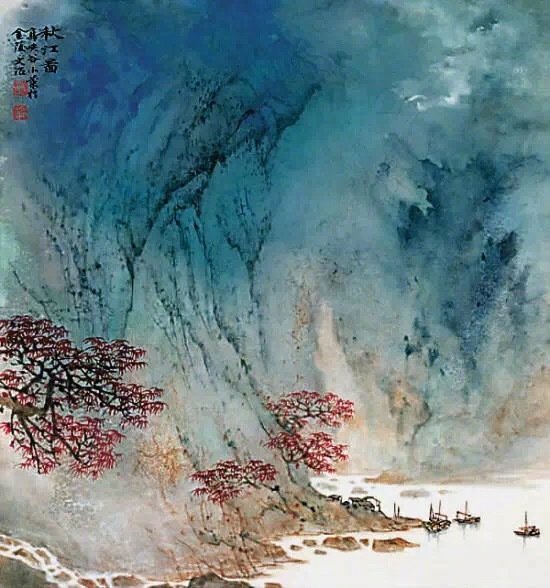 宋文治的泼彩山水画,让人沉醉。宋文治是新金陵画派的代表人物。