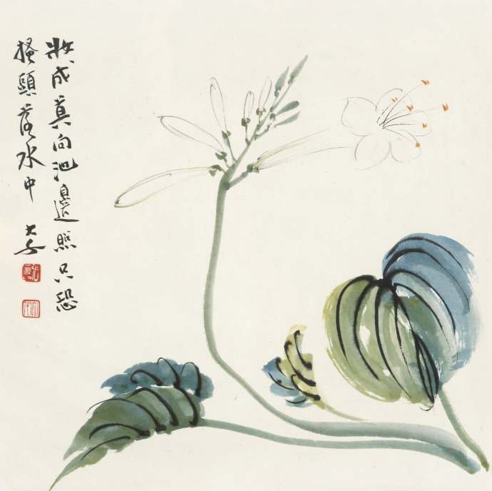 张大千是全能型书画家,其创作达“包众体之长,兼南北二宗之富丽”,集文人画、作家画、宫廷画和民间艺术为一体。于中国画人物、山水、花鸟、鱼虫、走兽,工笔、无所不能,无一不精。诗文真率豪放,书法劲拔飘逸、外柔内刚、独具风采