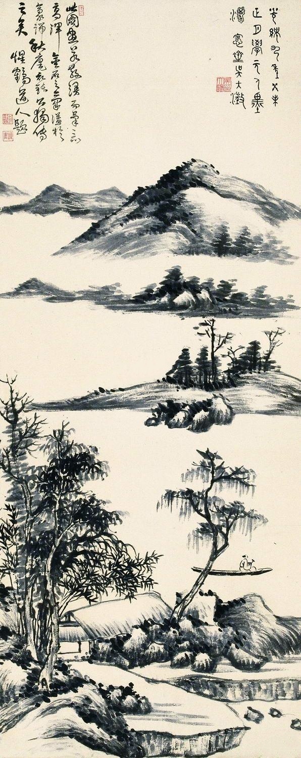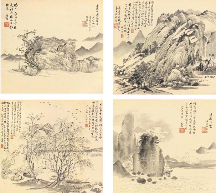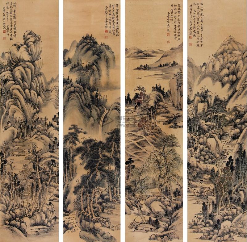 山水 四屏 水墨纸本 己丑(1889年)作