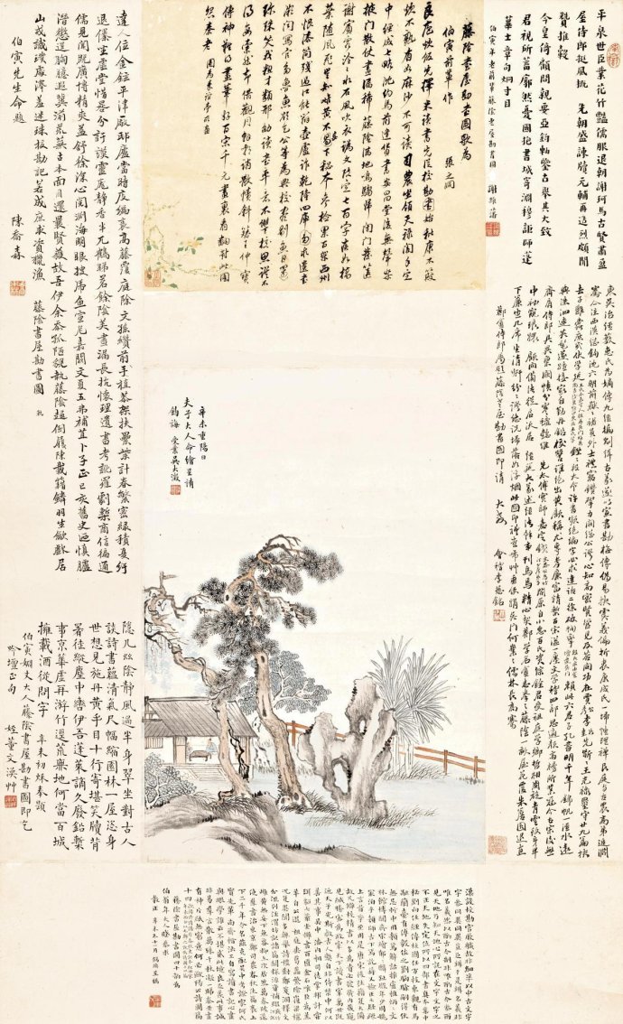 裱边:1.藤阴书屋勘书图歌,为伯寅前辈作。张之洞。(诗文略)图为秦谊亭所画。