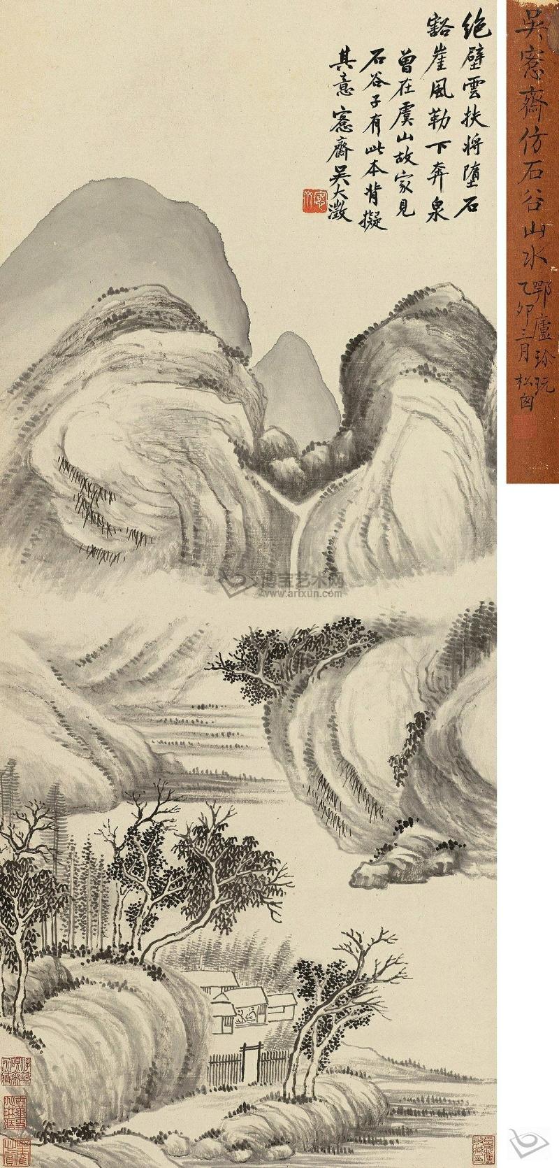题签:吴愙斋仿石谷山水。鄂庐珍玩。乙卯三月,松囱。钤印:礼堂自治