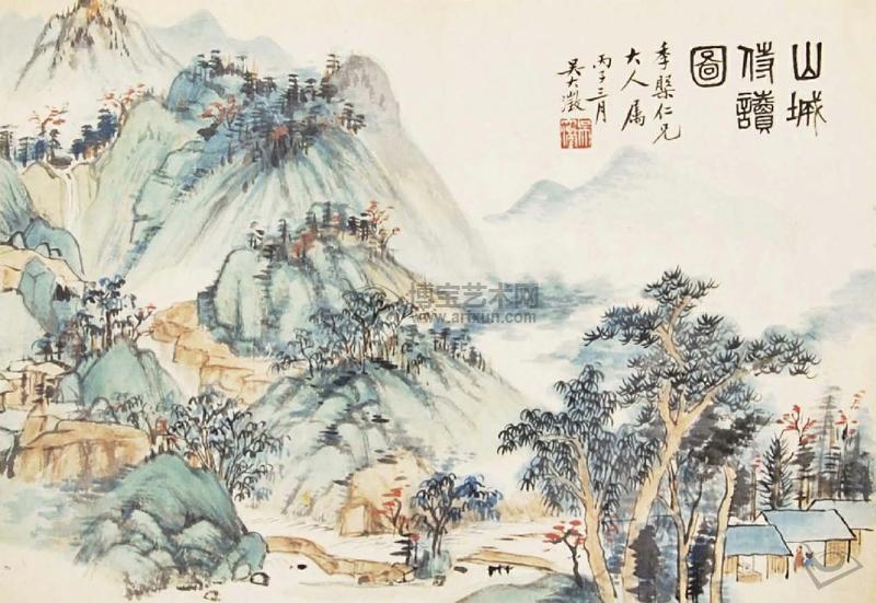 山城侍读图 设色纸本 丙子(1876年)作