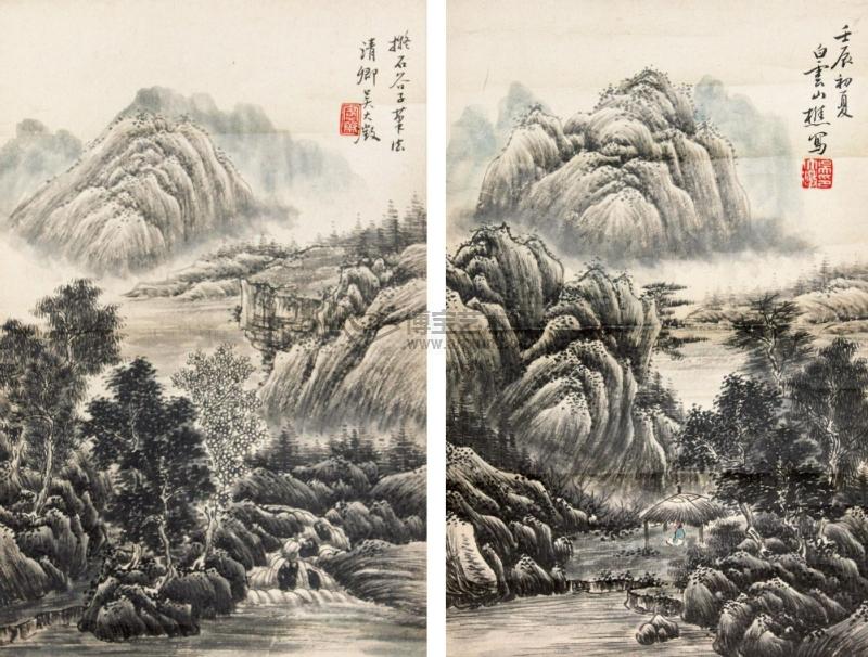 拟石谷山水 对屏 壬辰(1892年)作