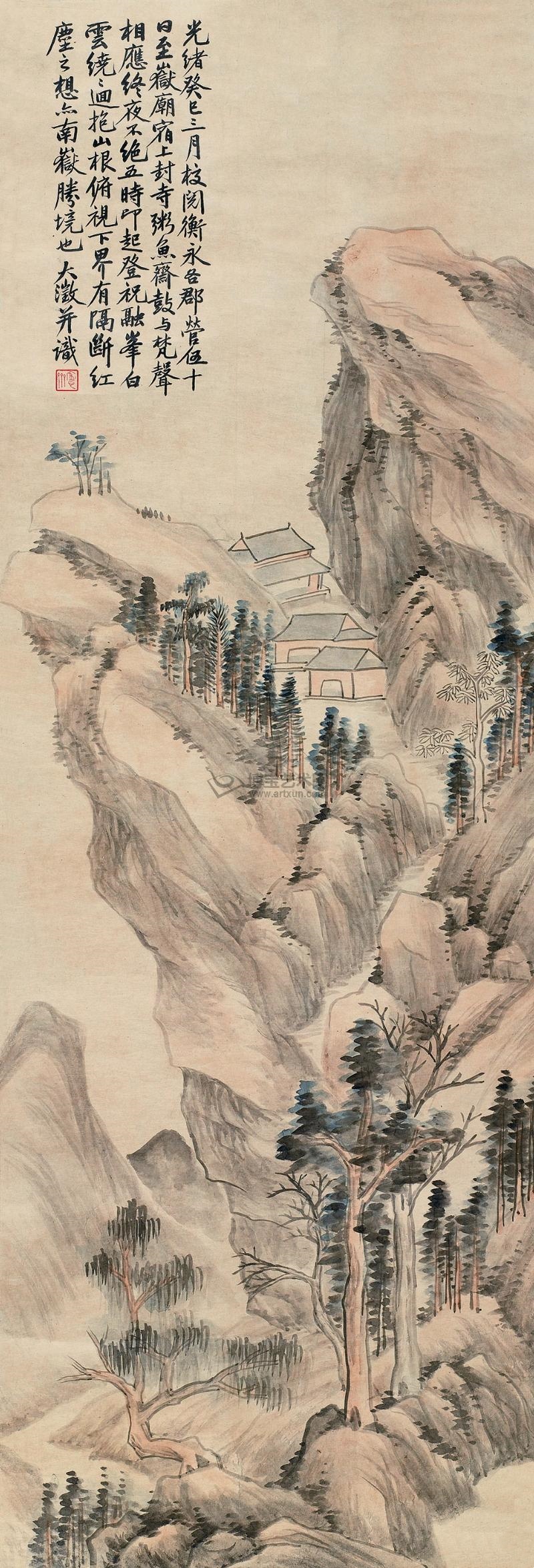 秋山阁寺 设色纸本 癸巳(1893年)作