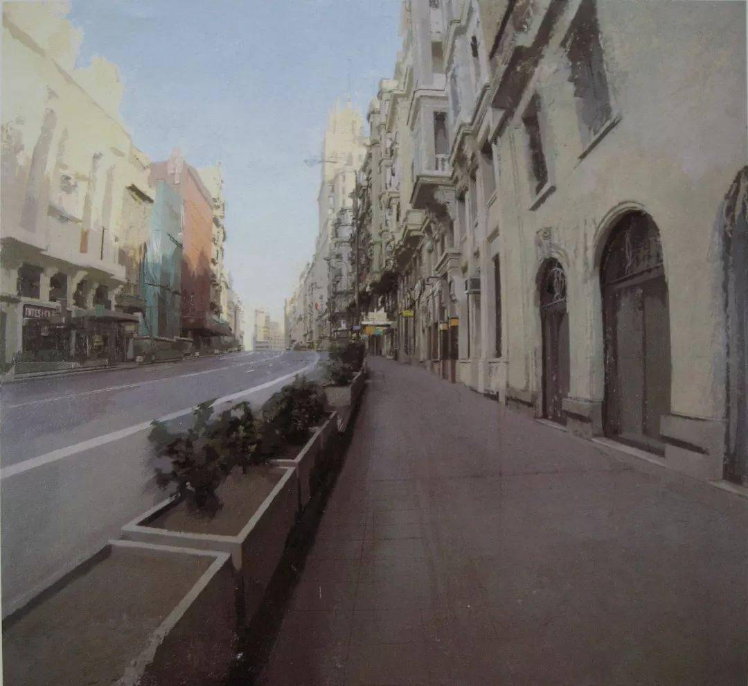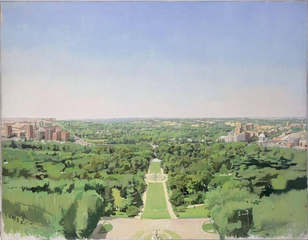 洛佩斯钟情于描绘熟悉与感兴趣的事物,那些空旷广阔深远的市郊风光、楼房林立的城市景观以及寻常院落、居家物什等等,人们认为枯燥的甚至不入画的景物,经过他极尽精微的描绘、独具匠心的处理和长时间的锤炼,都会富有诗意般地呈现于画面。在他的作品中,无论是宏大的城市景观,还是细腻的肖像刻画,观者都能看到凝固的光阴,感受到流动的四季,体会到人生的百味与世事的变迁,这正是洛佩斯绘画艺术的魅力所在.
