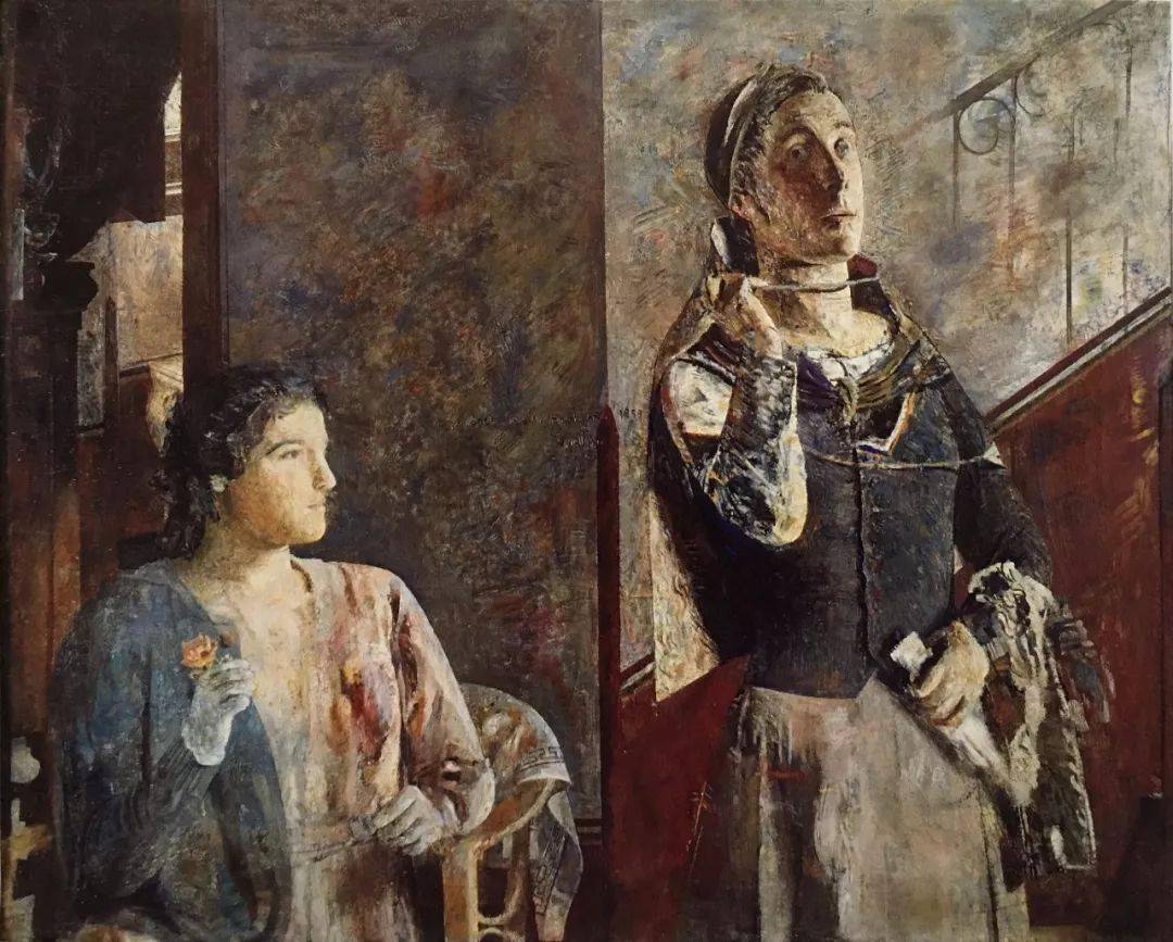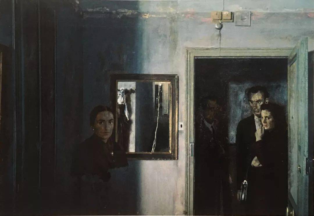 画面色彩的当代感。由于社会审美好尚与色彩知识的局限,西方古典绘画强调和谐的褐黄色表现,色彩单一性;在工业文明的大背景下,现代绘画强调的是画面原色般的红黄蓝等色彩的强对比与构成。而反其道行之的当代绘画,则强调色彩整体的中间色调。洛佩斯的画作基本上是亮灰的如同水粉色般的粉色倾向,不仅与古典传统不同,与现代绘画色彩亦不相同:没有凝重的、或者热烈的色彩,整体的“平淡”与柔和中寻求一种隐含的冲动或出格,用色彩把自己身边的日常生活环境升华成意境隽永的画作,使其拥有很强的现场感,又超越了具体场景的限制,走入观者的心灵深处。《盥洗池与镜》(Washbasin and Mirror,1967年)中,艺术家铺陈的是高明度整体协调的灰色调画面,当观者的视线关注在这熟悉却又生疏感觉真实却又仿佛在梦境的场景时,发现洛佩斯成功地打破了视觉物理上的必然性,以色彩传递了一种人类心灵皆可触及的神秘之境。