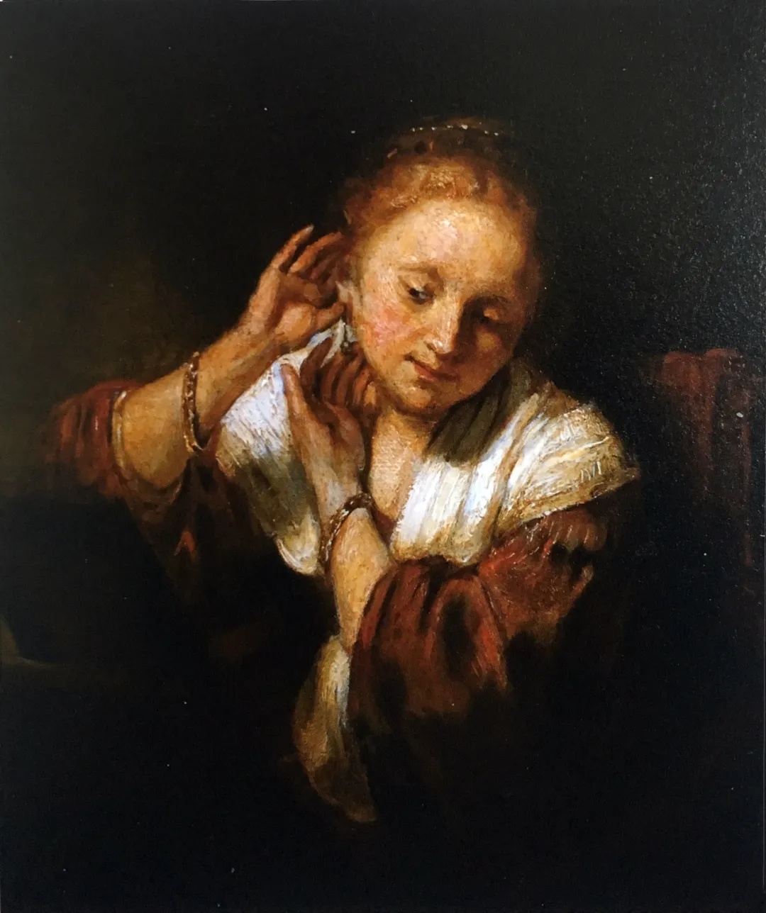 林岗临摹伦勃朗 试耳环的少女