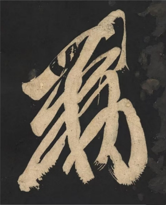 草书“敕”字,书于明晋府旧藏《十七帖》宋拓宋库装本之后,表示太宗皇帝本人认可。