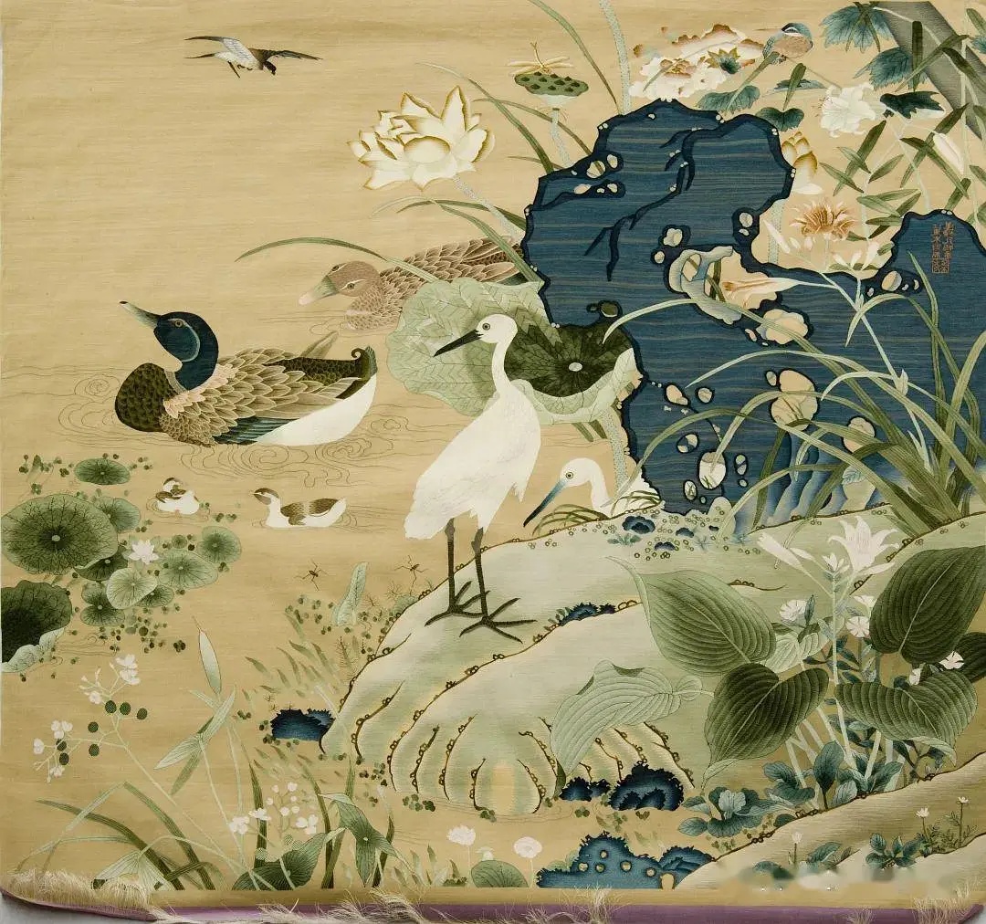 上海博物馆三大镇馆之宝之一——南宋朱克柔缂丝《莲塘乳鸭图》