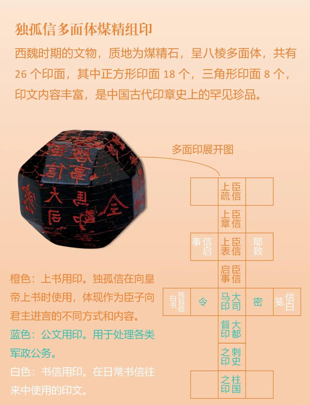 独孤信多面体煤精组印:煤精制成,多面有文,集多印于一体,北朝印玺制度的实物密码。