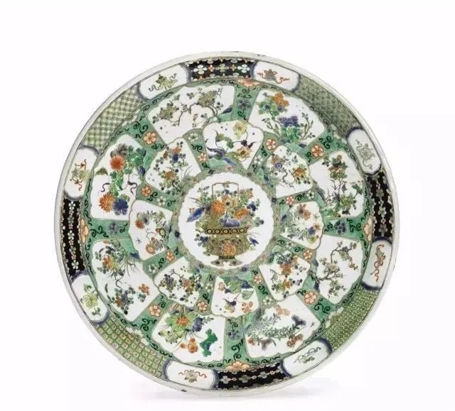 清康熙 五彩花篮图大盘