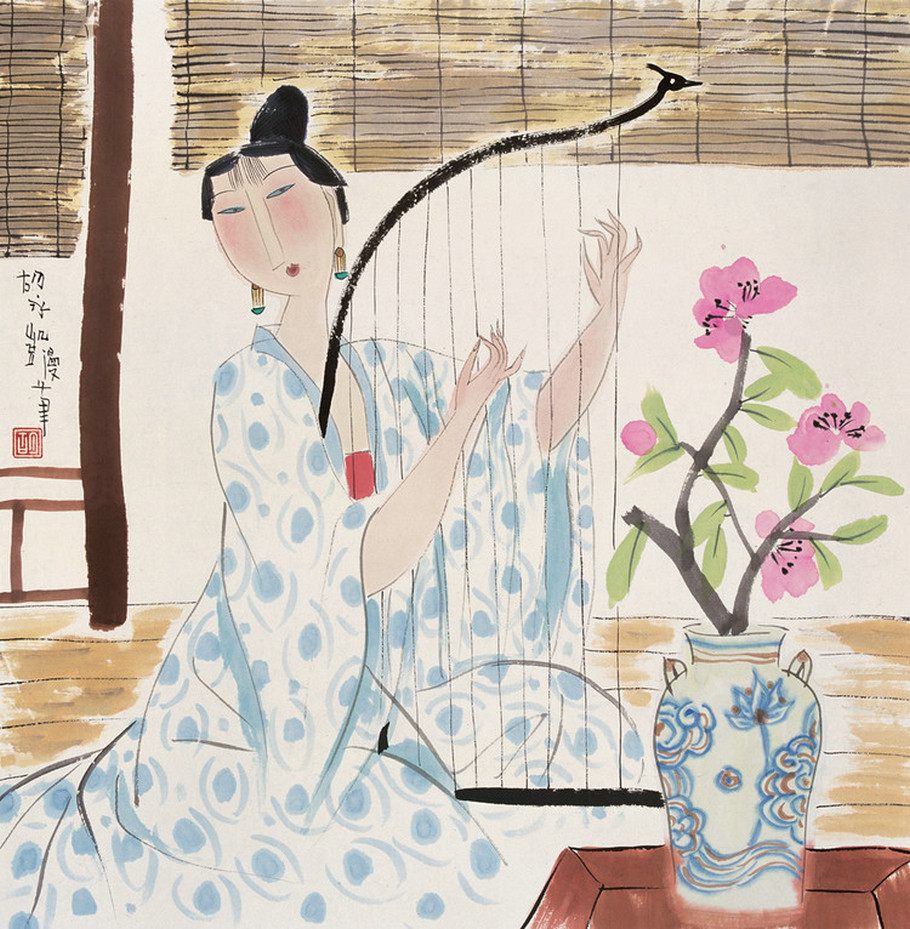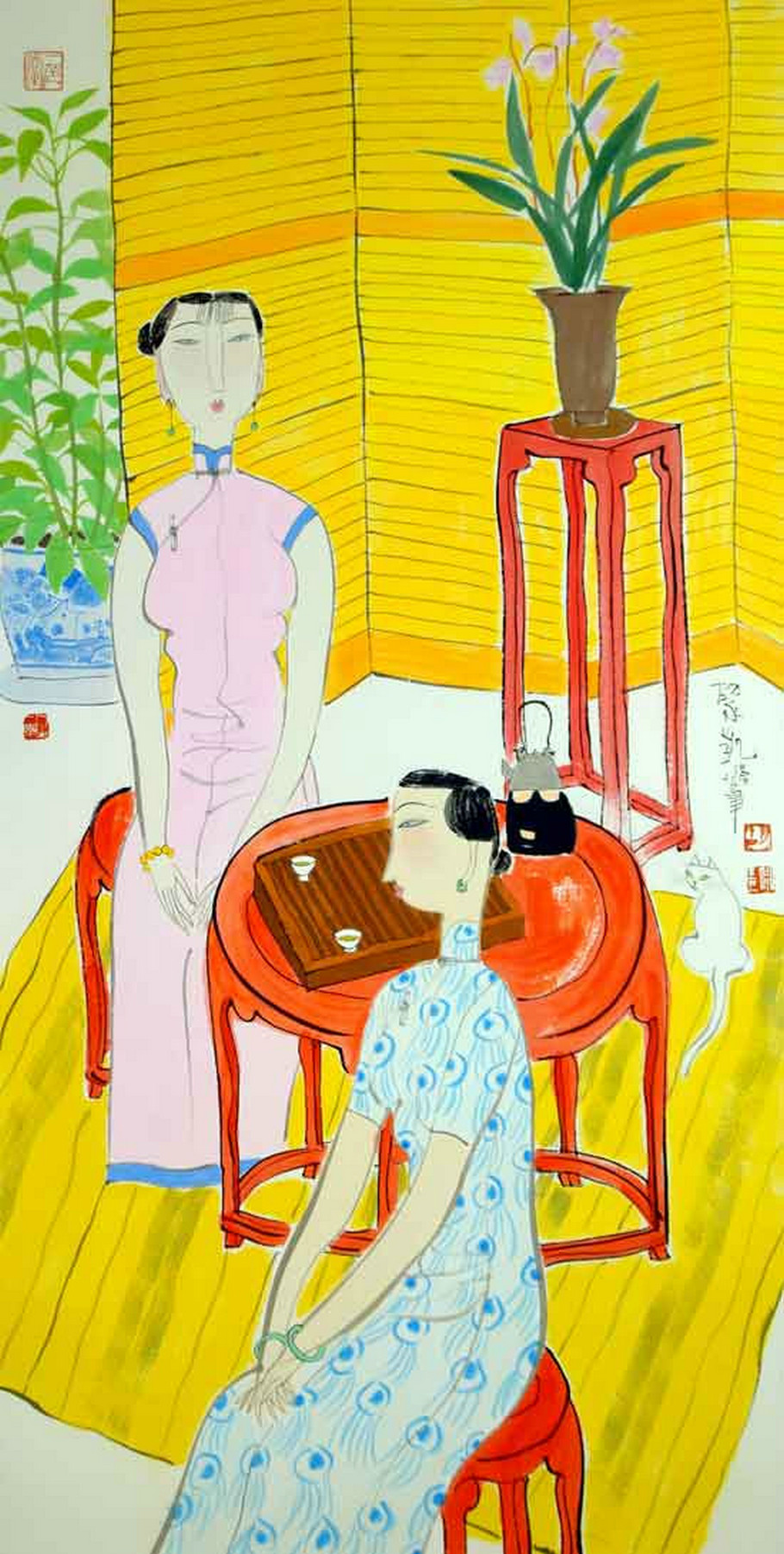 其画风独特,将中华文化的内在韵味和西方文化的外在张力有机地融会,把传统东方绘画的线条美与现代绘画的色彩美巧妙的结合,他以现代人的视角对传统艺术进行再诠释,创造出既富东方情调又具时代气息的鲜明画风。