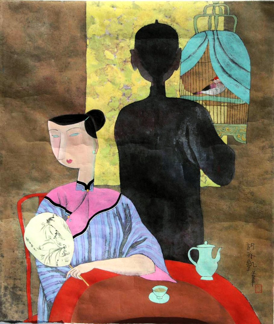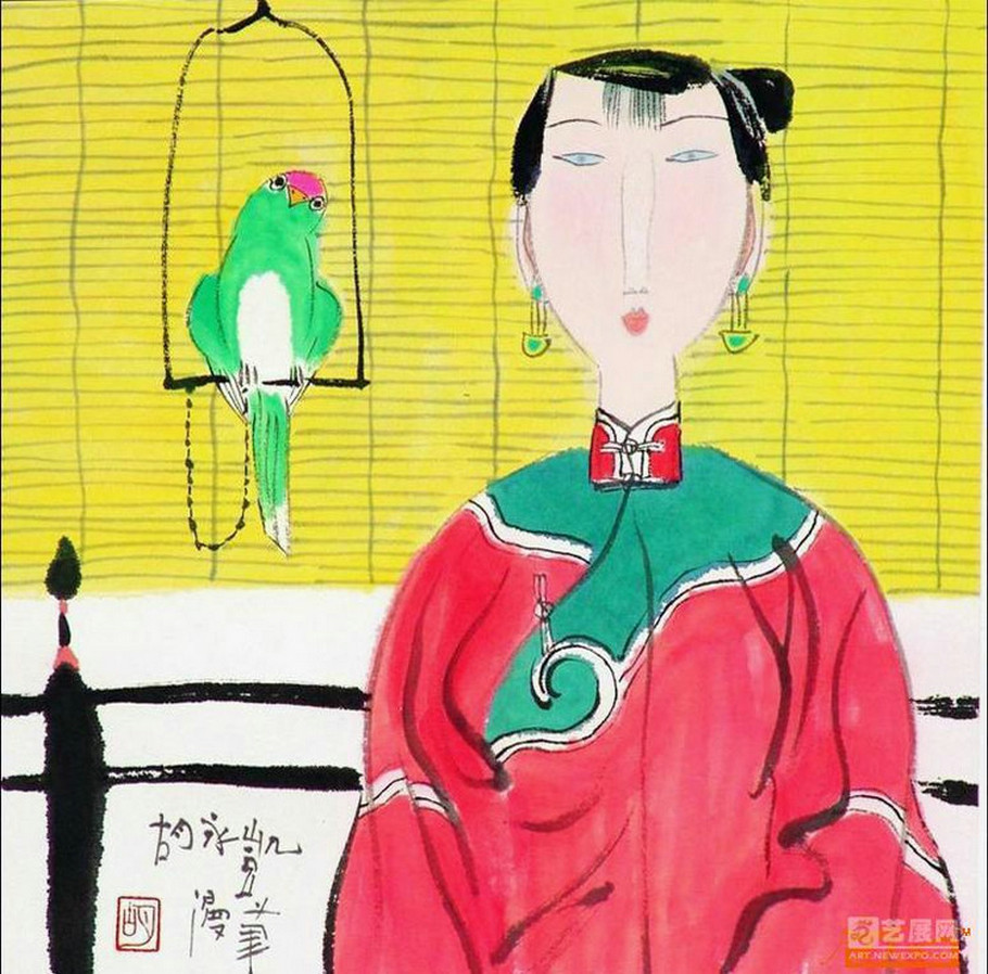 在当代画坛上,胡永凯的人物画可称独树一帜,很受瞩目,凡是看过他画的人物都有肯定的评价。他自上世纪80年代末移居香港和美国,可是他的艺术似乎并未受到光怪陆离的西方现代艺术的影响,仍然是一种平实、自然的面目,既没有狂放抽象,横涂竖抹以惊世骇俗,也没有过度修饰,搔首弄姿取媚世俗迎合市场。他的画以女性为主题,他的作品“情趣”、“兴趣”“趣味”随处流露,令作品趣味横生、回味无穷。