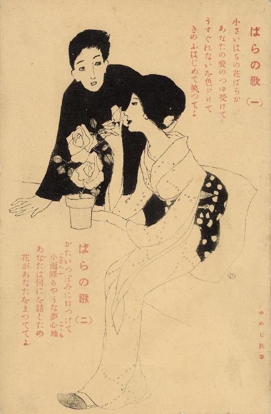 竹久梦二,《玫瑰之歌》,明信片,日本,约1900年代。