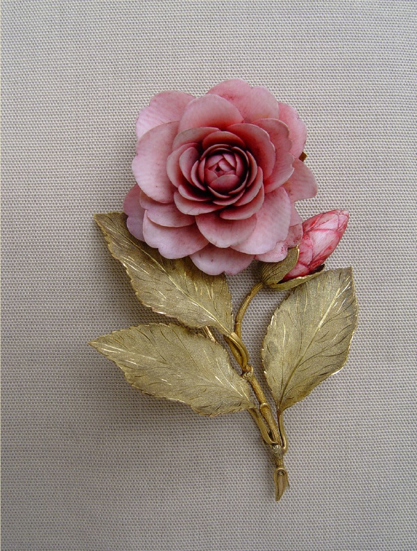 玫瑰胸针,雕金与象牙,英格兰,约1860年。