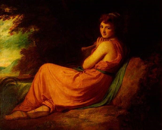 英国肖像画大师罗姆尼,“扮成卡吕普索的哈蒂”,1791年。卡吕普索是希腊神话中的海上女神,她聪明善良,渴望爱情;画中的她,正转过头来,含情脉脉,望着他;只是两人不知,这是他俩最后的cosplay,也是她在他的画中最后一次迷人的微笑……