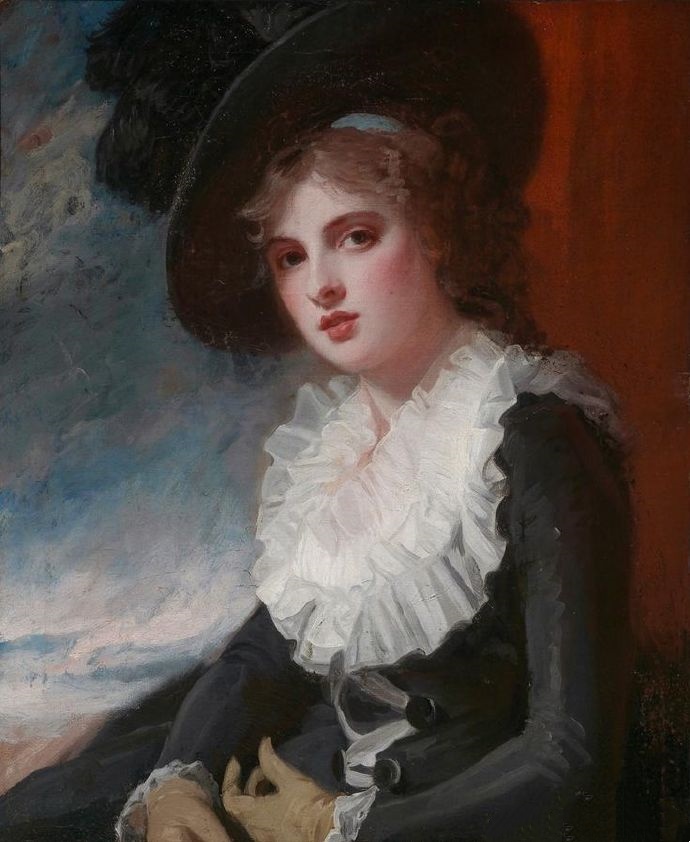 英国肖像画大师罗姆尼,“爱玛.哈蒂小姐像”,1782年。这年他俩初次在月光舞会邂逅,这时的她如鲜花初绽、娇艳欲滴,从此,他的眼中,他的心底,他的笔下,只有她……