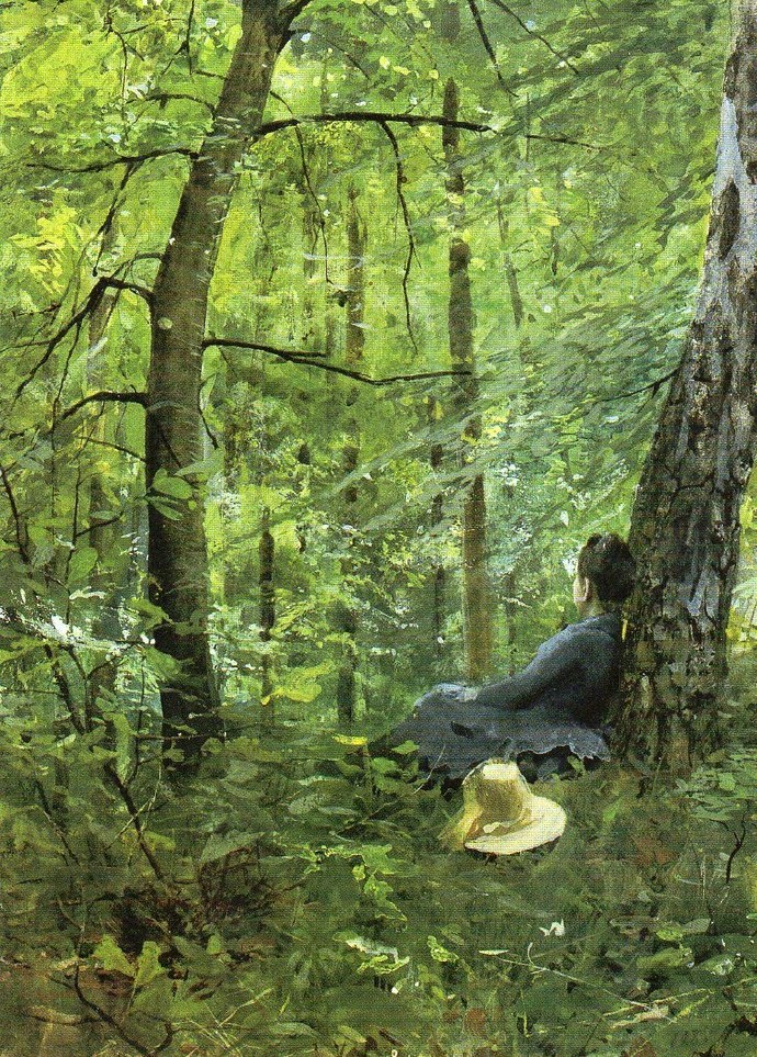 佐恩 ( Anders Zorn, 瑞典,1860-1920) - 巴比松森林中的艾玛 (1886)