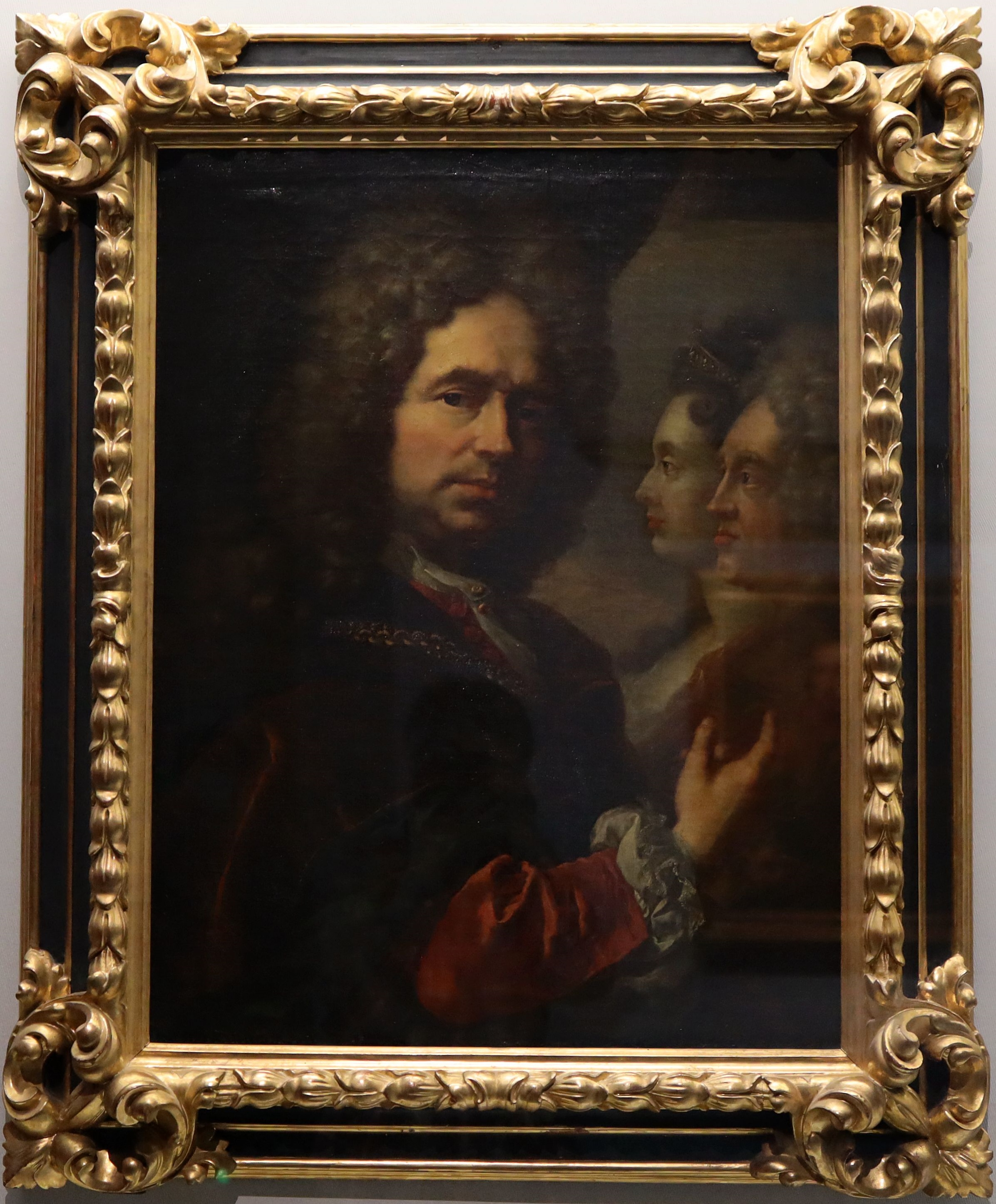这幅充满谜题的自画像,将其定义为静物画也不为过。画家的肖像悬挂在右上方的木架上,隐藏在多个暗示他职业身份的物品中,并不在意通过位置、大小或光线强弱来阐明自己是画中主角。