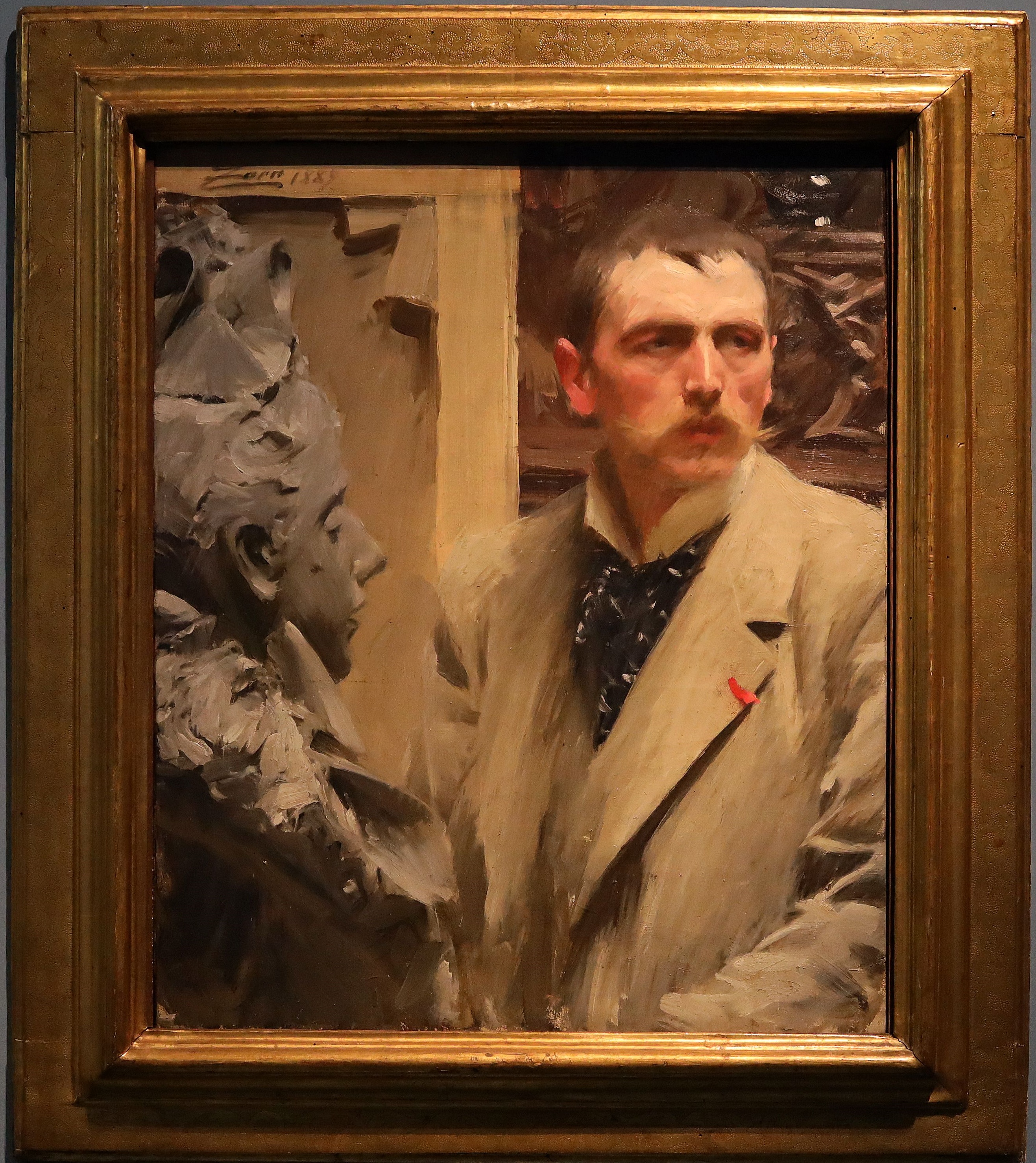 出于满足自身乐趣或应朋友所邀,他创作的小幅肖像画和自画像多以随意自由的手法快速完成,它们游离于正式画作之外,有些甚至到最后仍以草稿的形式呈现,这幅自画像即是如此。