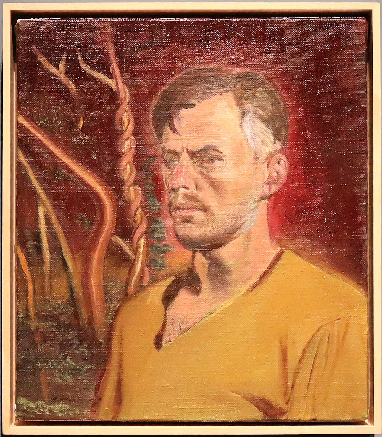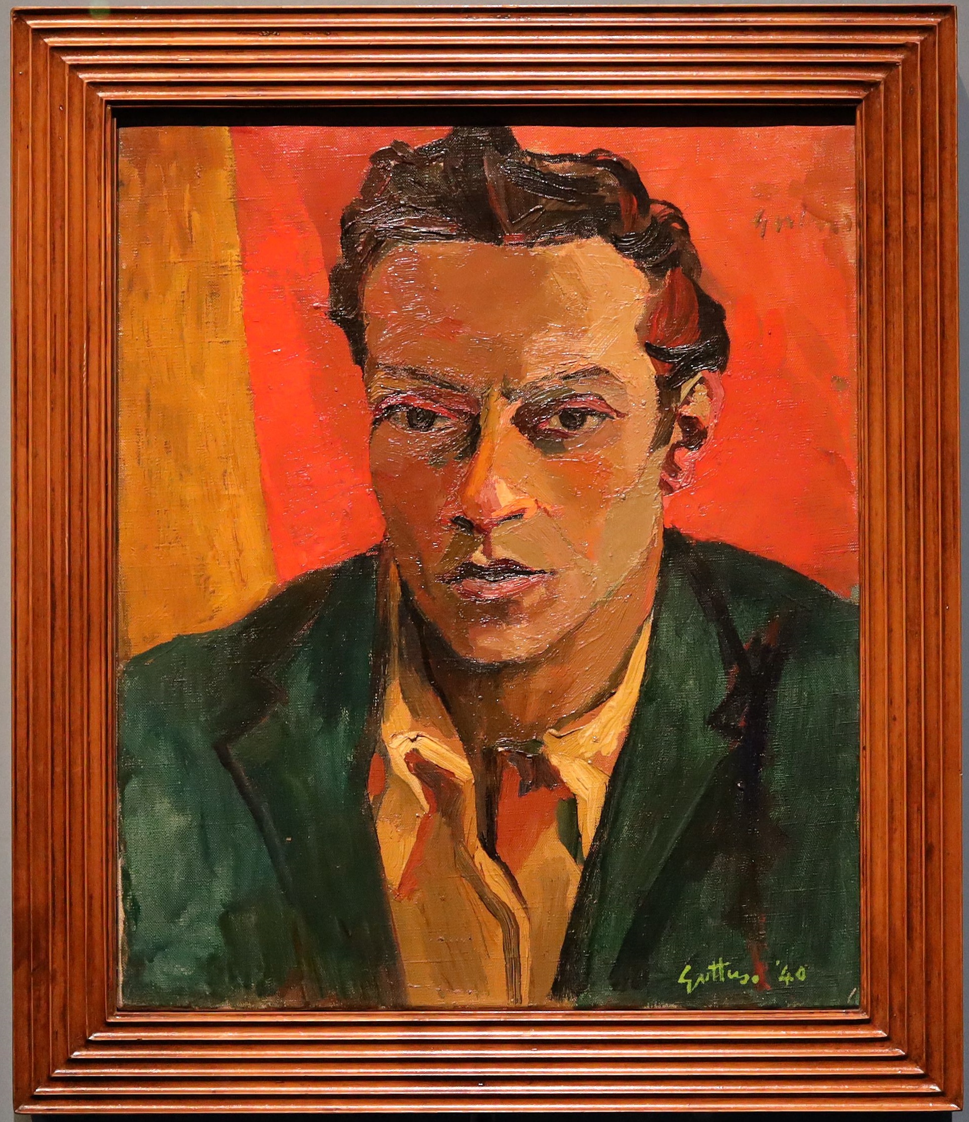 这幅乌菲齐美术馆收藏的个人风格强烈的古索图自画像创作于1940,当年年初,就在意大利参战的几个月前,古图索正处于职业生涯的关键时刻,他尽管带有鲜明的表现主义色彩,致力于研究现实主义美学,但拒绝政权的修辞及其所倡导的模式。另外,画家把肖像画和复杂构图相结合,对人物形象展开深入的研究。