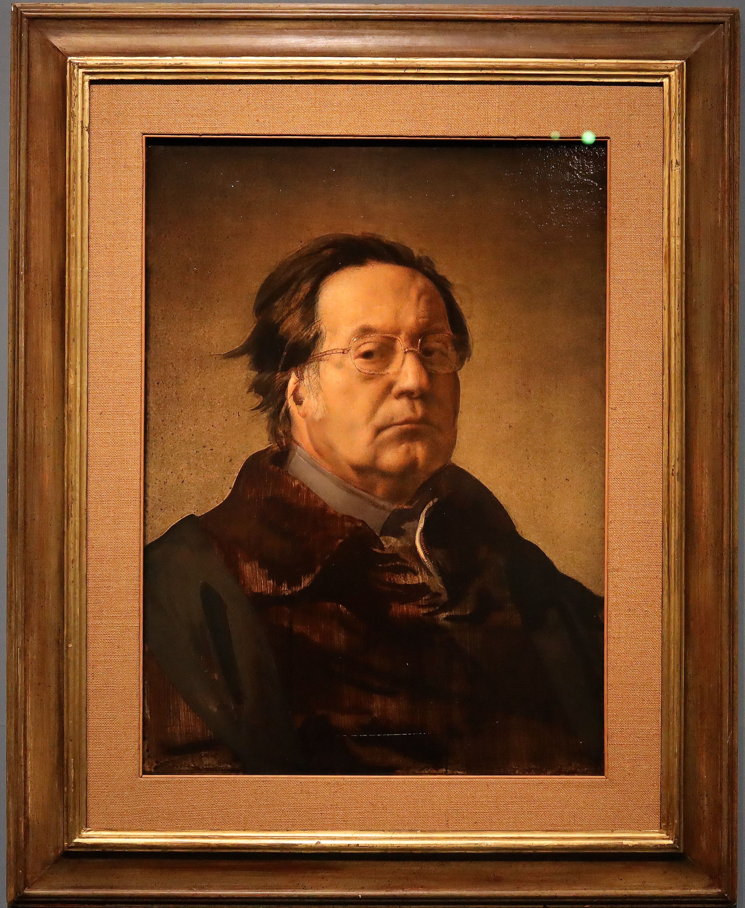 唯有从炯炯有神的眼睛中观者仍然能看到画家有过志得意满的幸福时光,毛皮饰边斗篷和胸前的奖章,诉说着画家曾经的辉煌成就与奢侈生活。然而这一切都已褪去,被反省和忧郁所掩盖,轻抿的嘴唇似乎意味着画家比任何人都清楚,昔日荣光一去不返。