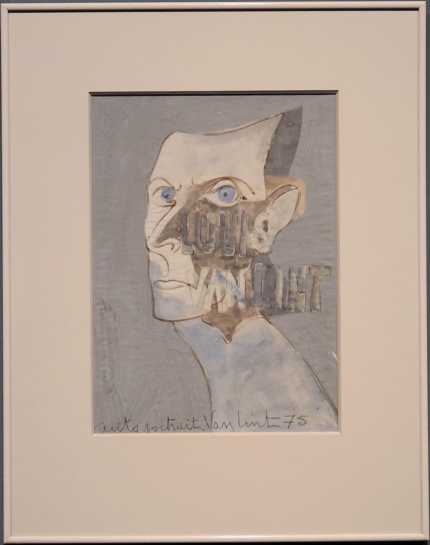 这幅创作于1975年的自画像,在2013年由画家的侄子利昂内尔·科林捐赠给乌菲齐美术馆。半身像的姿态,深刻而严肃的目光注视着画框外的某处,这些特征与画家自年轻时创作的许多自画像相同。然而,通过这幅画作,画家忠实地反映出不断增长的年纪以及长期患病的状态。与以往的自画像相比,这里完全摒除了任何形式的修饰,甚至没有对发型和着装加以描绘,人物在单色背景下被强烈地呈现出来。画家以非常规的方式将名字以大写形式呈现在面部的一块深色结构中,如同印章一般,这是艺术家意识状态和独创风格的强烈表现,通过这种风格,画家传递自己的情感,达到具象和抽象形式之间独特的平衡。