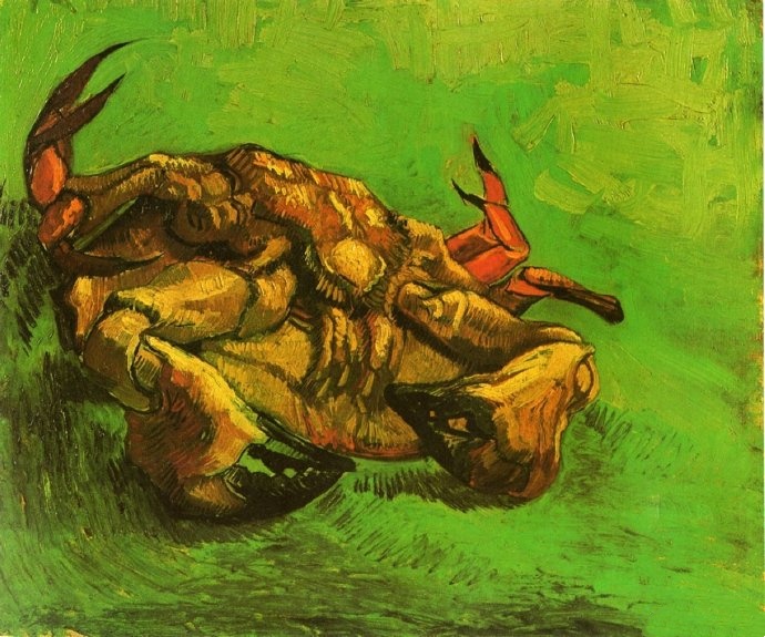 图2,梵高约作于1889年的《翻背蟹》(Crab on Its Back)尺寸:38 x 46.5 cm 材质:布面油画