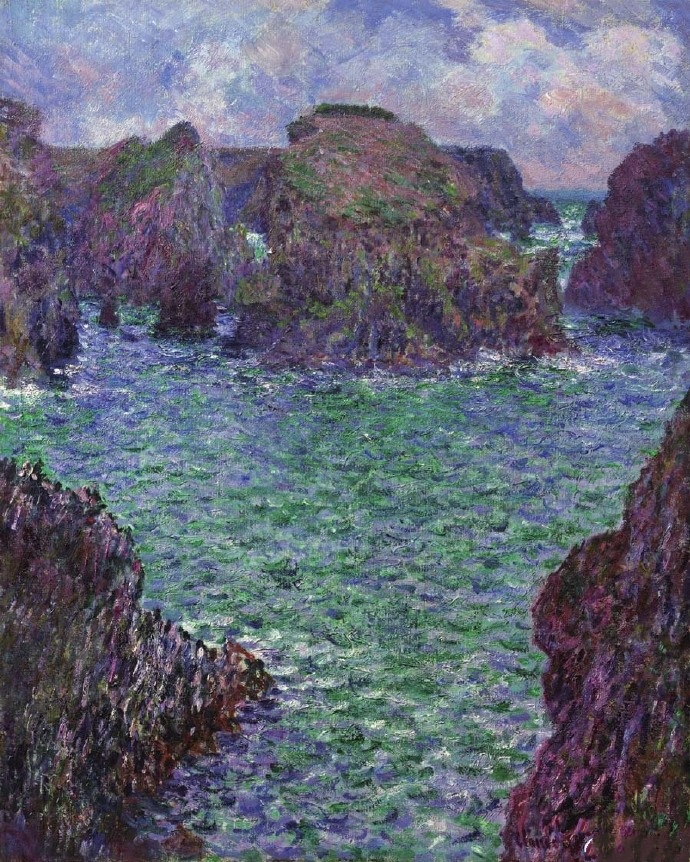 1886年,Claude Monet(莫奈)踏上了贝里岛(Belle-Île),这个位于法国布列塔尼半岛南部海域的小岛,以其独特的悬崖和岩石而闻名。原本计划停留两周的莫奈,最终在岛上度过了两个多月的时光。他形容这个地方“悲戚”、“惊心动魄”且“极度美丽”。《贝里岛戈尔法港的岩石》(Rocks at Port-Goulphar, Belle-Île)就是他在贝里岛期间的作品之一。