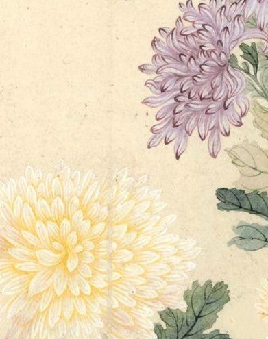 菊,一名治蘠,一名日精,一名节花,一名傅公,一名周盈,一名延年,一名更生,一名阴成,一名朱嬴,一名帝女花……埤雅云,菊本作菊,从鞠,穷也,花事至此而穷尽也。宿根在土,逐年生芽。茎有棱,嫩时柔,老则硬,高有至丈馀者。叶绿,形如木槿而大,尖长而香。花有千叶、单叶,有心、无心,有子、无子,黄、白、红、紫、粉红、间色浅深,大小之殊,味有甘、苦之辨,大要以黄为上,白次之。——[清]汪灏《御定佩文斋广群芳谱》