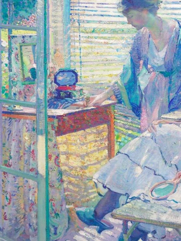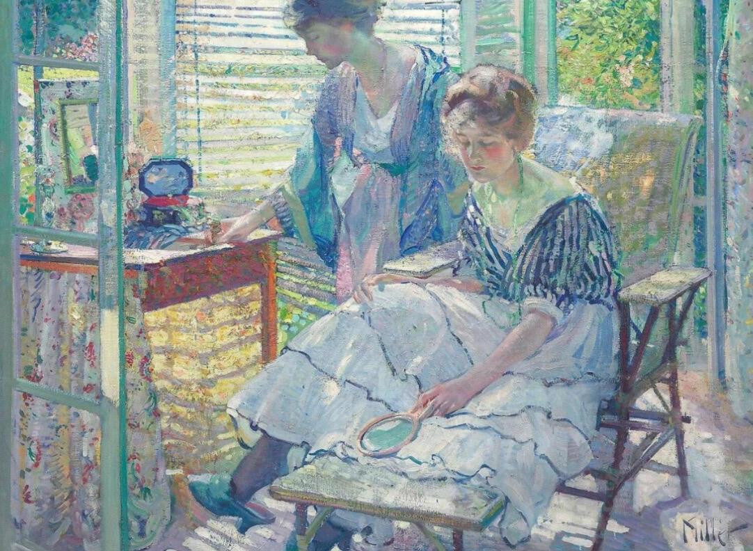 理查德·爱德华·米勒(Richard Edward Miller)是美国印象派的重要代表人物,也是著名的吉维尼艺术家群体核心成员之一。其绘画有明快的色彩运用、富有韵律感的笔触技法、充满光感的表现手法以及独特的装饰性美学特征。1898年赴法深造期间,米勒与印象派大师克劳德·莫奈比邻而居,这段经历对其艺术创作产生了深远影响,促使他进一步发展出兼具印象派光色表现与装饰美学的独特画风。