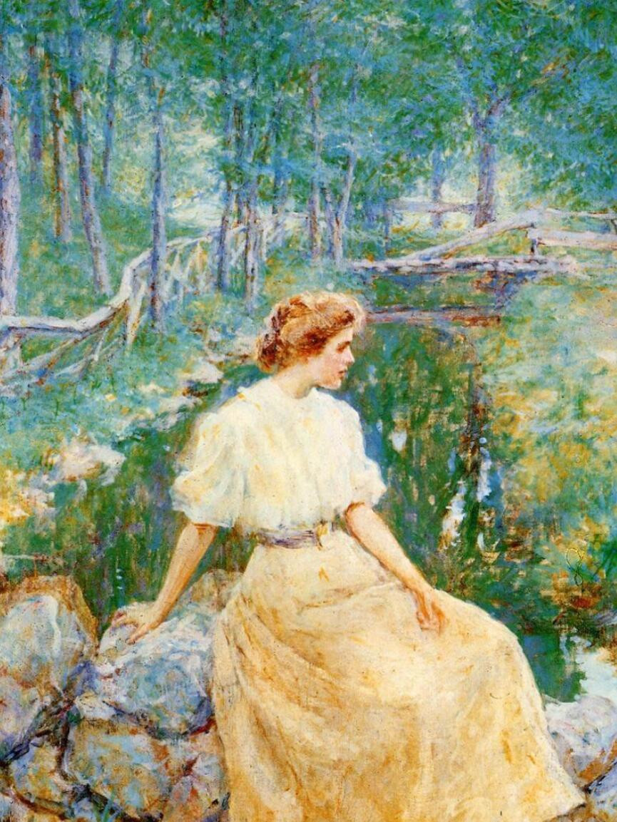 罗伯特·刘易斯·里德(Robert Lewis Reid,1862-1929)是美国印象派(American Impressionism)的重要代表人物。他的创作融合了法国印象派的光色技法与美国装饰艺术的优雅气质,形成了独具特色的"装饰性印象派"风格。里德的作品见证了19世纪末至20世纪初美国艺术从传统向现代的转型,其融合印象派与装饰艺术的表现手法,对后来的美国插画与壁画发展产生了深远影响。