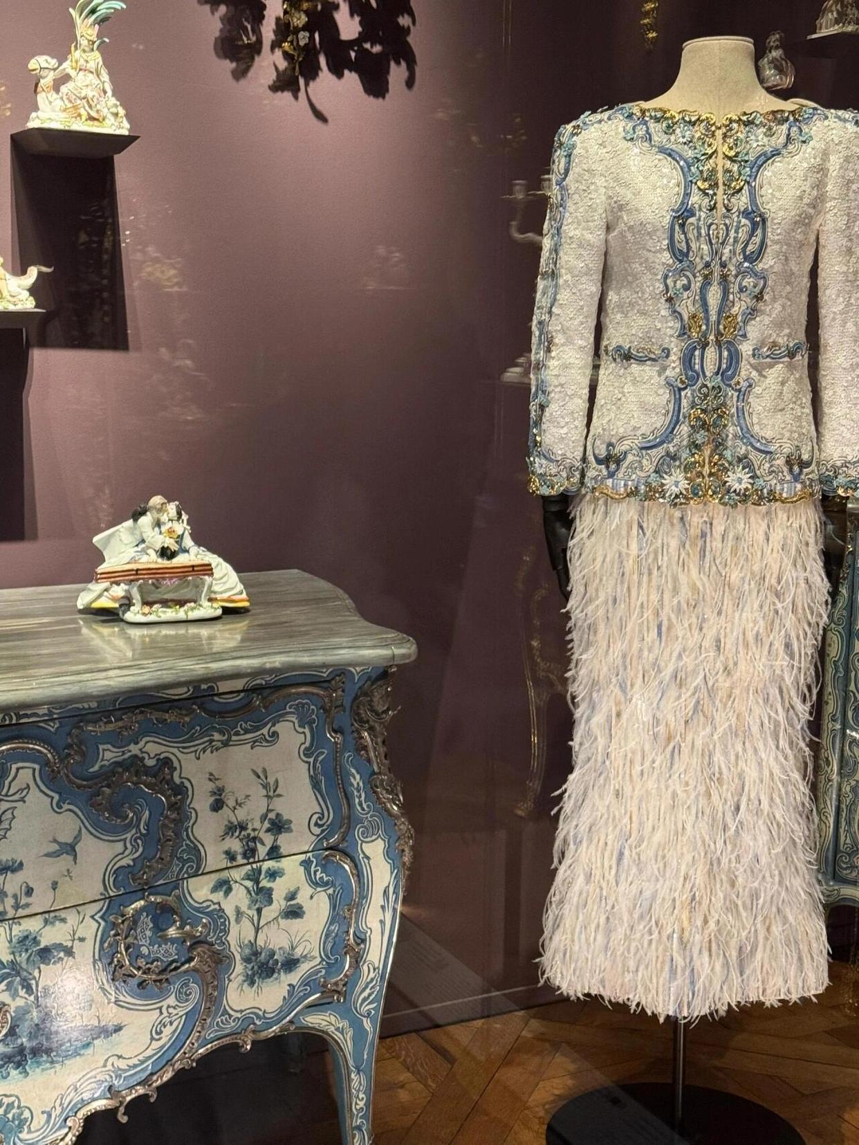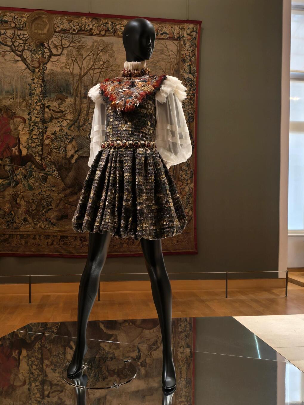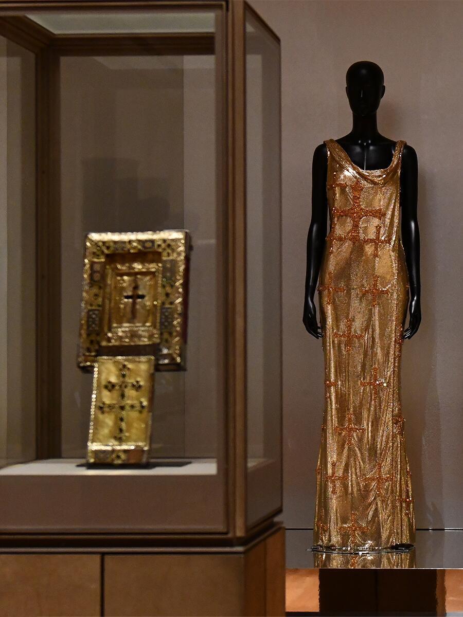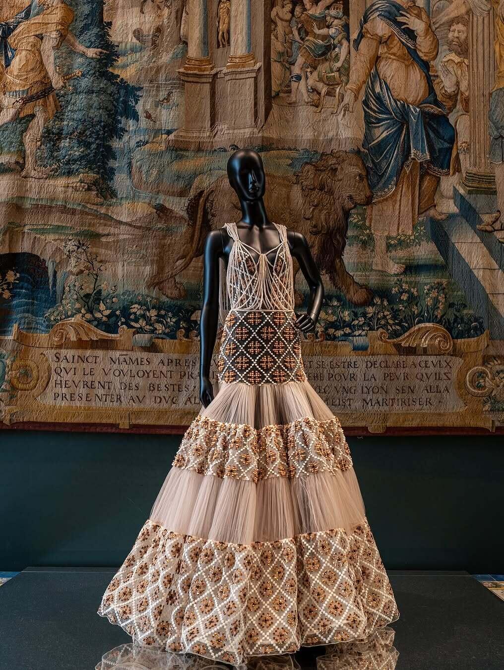 45个相互连通的房间仿佛带你穿越了四个关键历史时期:拜占庭和中世纪、文艺复兴、大世纪和18世纪、19世纪。99件展品从1960年至今,每一件都承载着设计师的灵感与历史的厚重。蕾丝轻纱拂过文艺复兴的壁画,鎏金刺绣与巴洛克雕花交相辉映,艺术史的长卷里从此多了时尚的注脚。