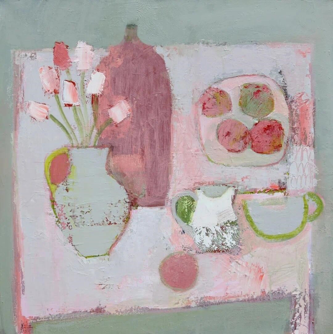 英国艺术家索尼娅·巴顿(Sonia Barton)的作品通常采用柔和的调色搭配,扁平的视角和对构图的和谐调整;这些物体经常在画布上“移动”,以浮雕和纹理形状、蚀刻线条和图案的形式,留下它们曾经存在的痕迹。