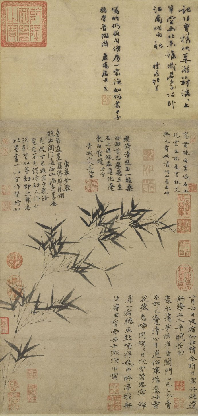 禅扉一宿听渔鼓,换得愁中醉梦醒。倪瓚竹枝图,台北故宫博物院藏