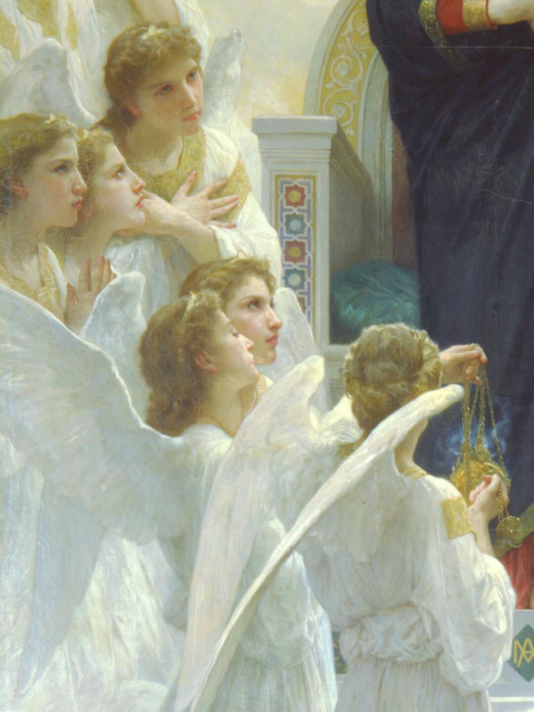 《天使女王》(拉丁语:Regina Angelorum)是法国艺术家威廉-阿道夫·布格罗(William-Adolphe Bouguereau)创作的一幅油画,描绘了圣母和耶稣被天使环绕的场景。画中的两个天使跪在他们面前,手中拿着香炉。这幅画的尺寸为285×185厘米。