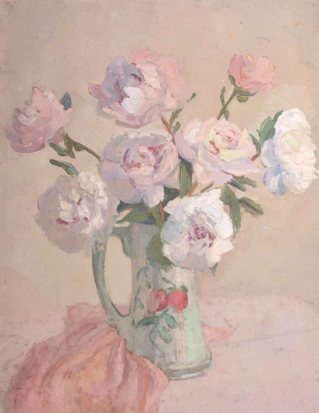 中国女画家潘玉良众多的静物绘画中,她对各类多样的花卉情有独钟,它们精致端庄,好似端坐的妇人,在丰富多样的色彩下感受到成熟的宁静,沉默于生命里不尽的沧桑风雨。在色彩和线条间勾勒出幸福而感动的花间心事,想必是经过了心灵的雕塑,以花朵来诠释完整的生命历程。