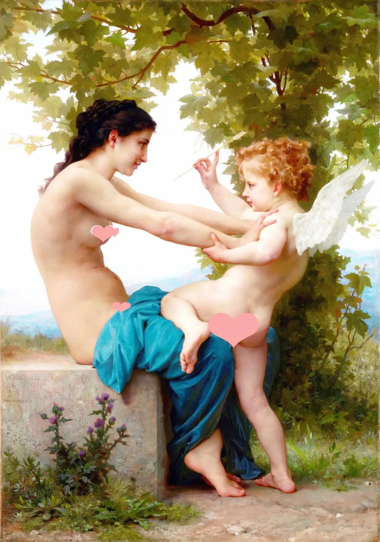 “史上最善于描绘爱情的画家”布格罗的画作《抵抗爱神的少女》将我数十年前内心深处的战争描绘得淋漓尽致。丘比特欲将爱情之箭插入少女的心脏,而少女正在用双手欲迎还拒地阻止他。然而他们之间的抗争与其说激烈,还不如说更像是一场游戏。丘比特足够伶俐却不以蛮力著称,但是少女此时并不像在全力推开他的模样。不,反而像是欣赏在身上纠缠耍赖的小朋友。