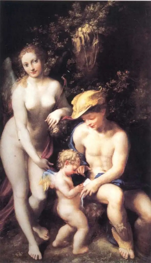 爱神丘比特的教育 柯列乔 1524-1525年油彩155x91.5厘米现藏伦敦国家美术馆