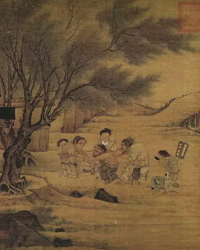 ▲《村医图》李唐 绢本设色 纵68.8厘米 横58.7厘米 台北故宫博物院藏