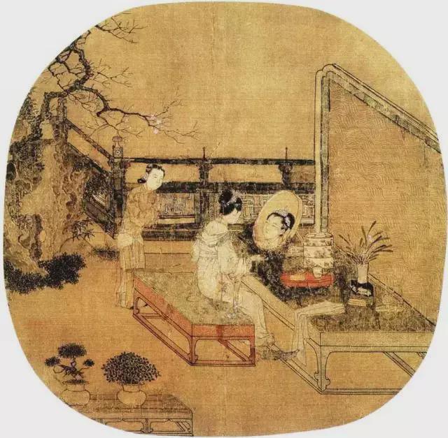▲《妆靓仕女图》宋 苏汉臣 团扇 绢本设色 纵25.1厘米 横26.7厘米 美国波士顿艺术博物馆藏