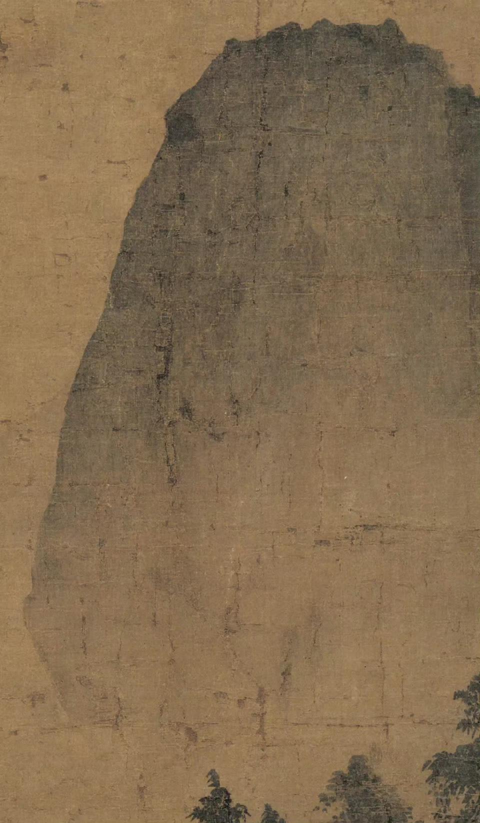 夏圭擅长剪裁与美化自然景物,善画“边角之景”。《雨余烟树图》中,画面构图稳定而自然,密林与远山的反差带来疏密变化,营造出广阔的空间感。这种构图方式使得画面既有层次又不失整体和谐。