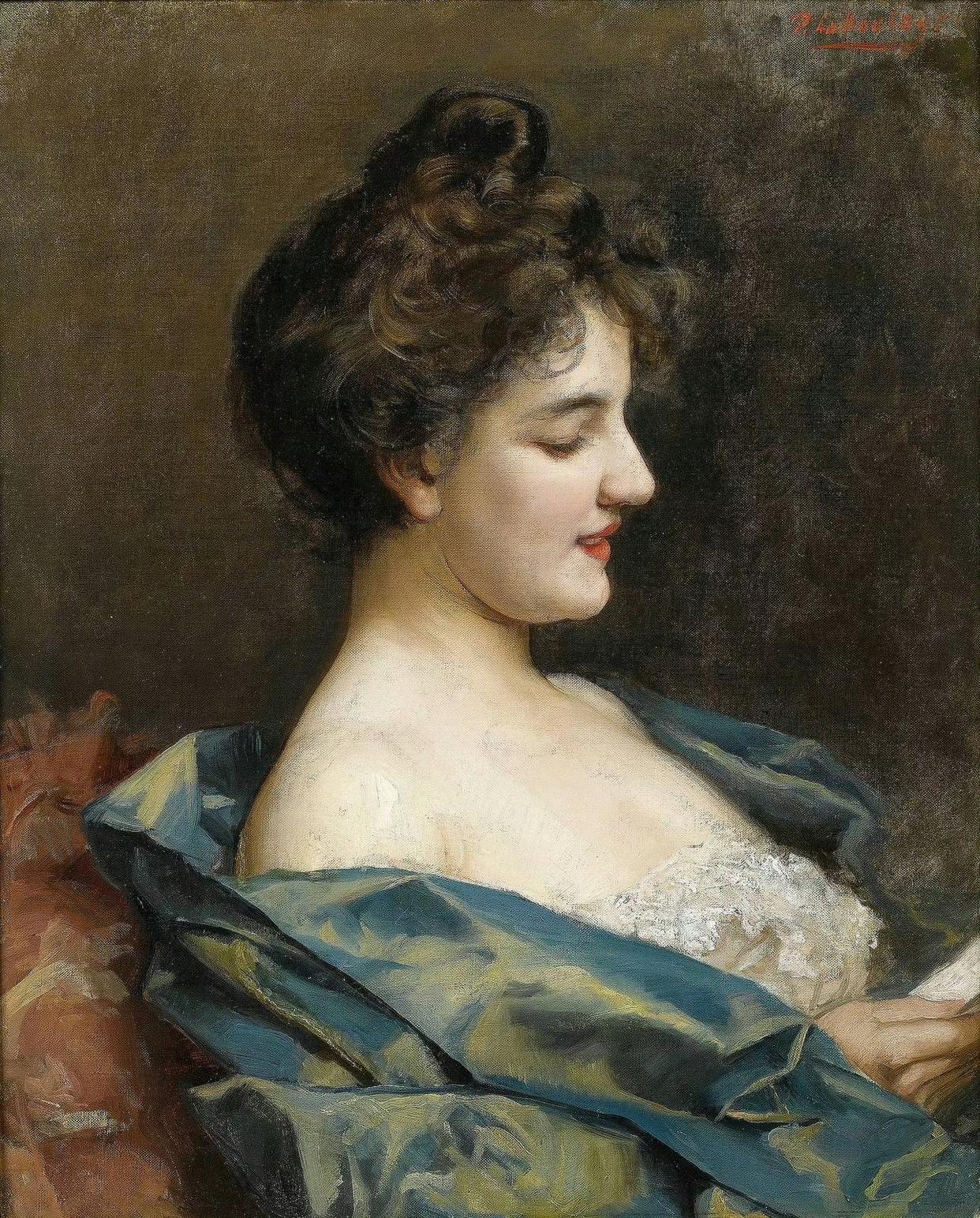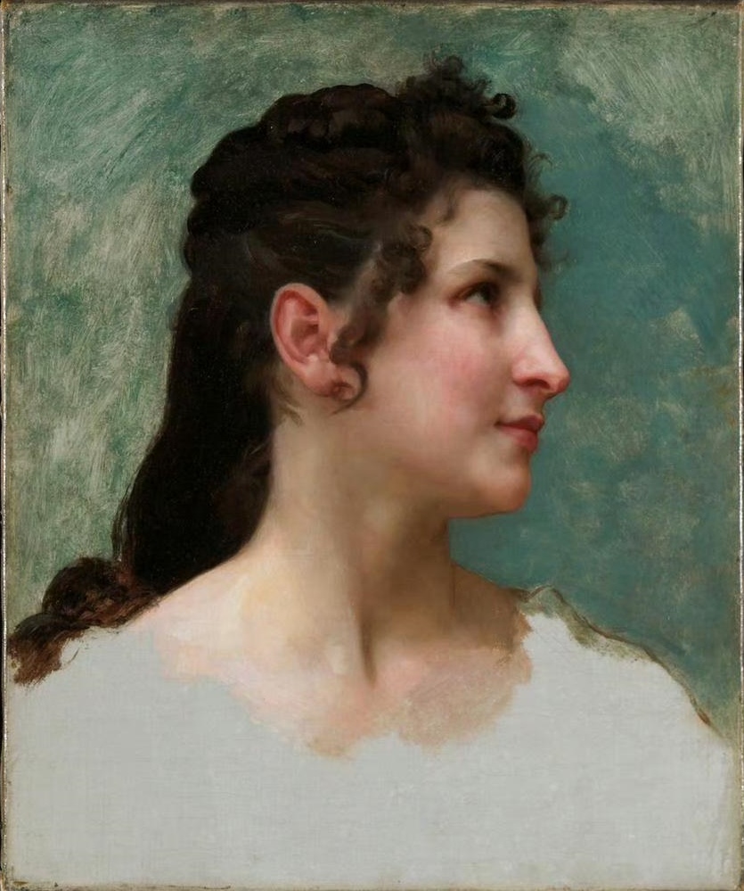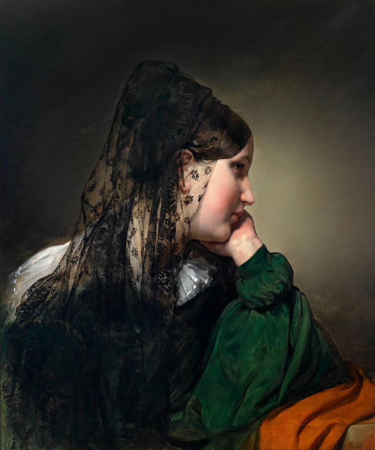 油画中的美女侧颜肖像